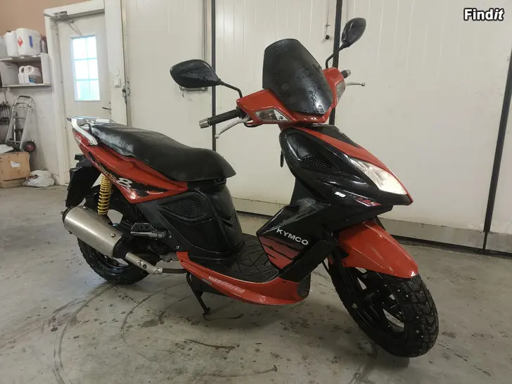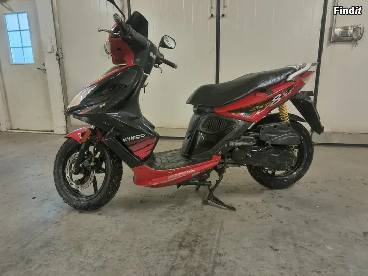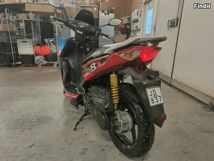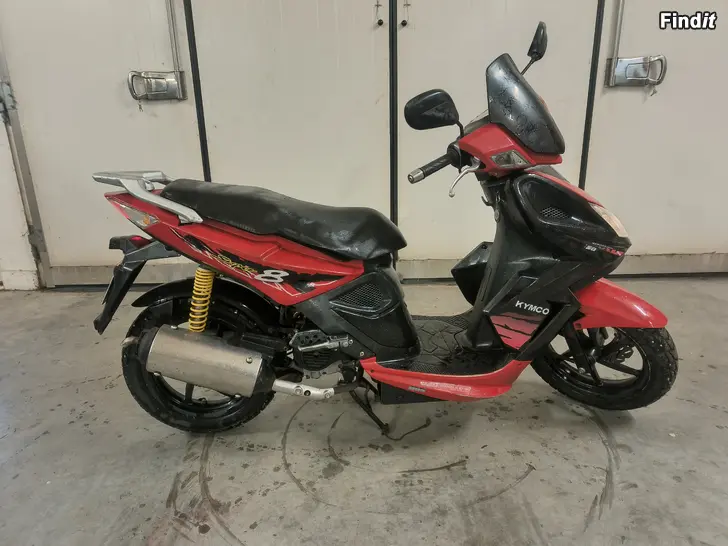 Laadukas Kymco Super8 skootteri. Hiljainen ja vääntävä 4-t. Rajoittimen johto katkaistu jo edellisen omistajan toimesta, mittarin mukaan 60km/h, johdon liittämällä lienee 40km/h. Jarrut, valot, vilkut, töötti toimii.