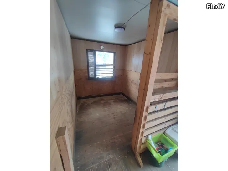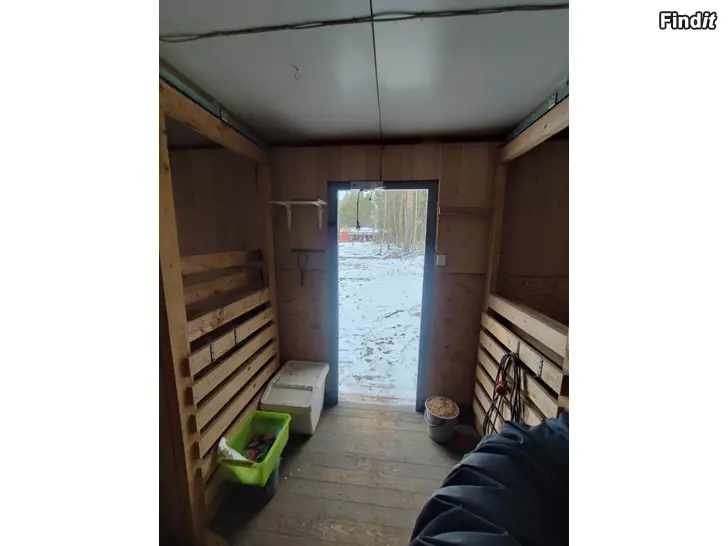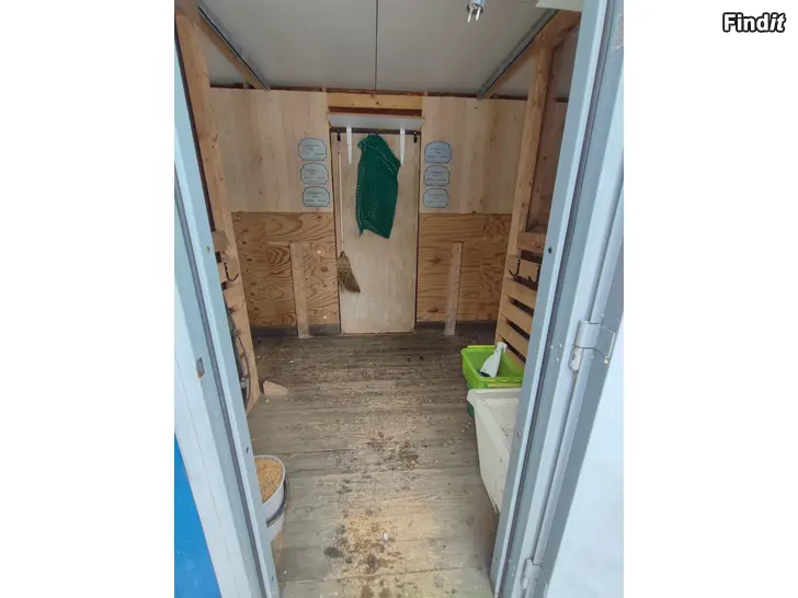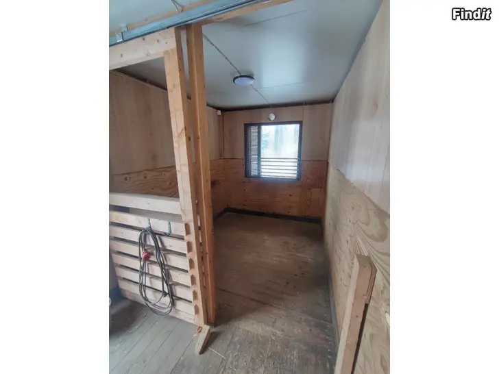 Talli kahdella liukuovi karsinalla ja välikäytävällä. Molemmissa karsinnoissa kostean tilan valaisimet. Tallissa uretaanieristys, mutta ei varsinaisesti lämmin talli. Lautalattia. Sähköt vain valot vedetty jatkoroikalla. Ollut käytössä shetlannin poneilla ja isommillekin poneilla, ei ole ollut aktiivikäytössä. Tallissa vaihtolavakiskot, ei kuljetus mahdollisuutta, joten nouto. Kiskojen alle tulevat pölkyt kuuluvat kauppaan. Tallissa peltikatto joka täytyy purkaa kuljetuksen ajaksi.