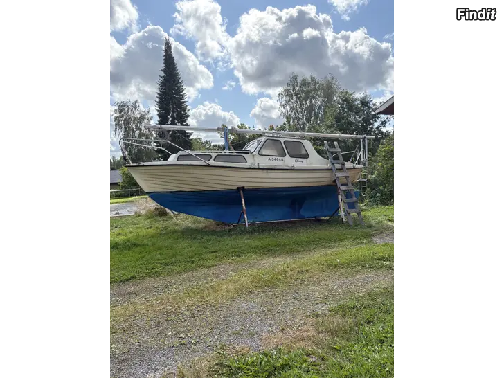 Moottoripurjehtija, p. 7.5m lev. 2.5m syväys n. 1.2m. Moottori Yanmar YSB 12 diesel. Varusteet: kemiallinen WC, valopetrooliliesi. Tiskiallas+ hana, Lämmitin Wallas 1800 diesel. Karttaplotteri, kompassii uusi Akku uusi.Rekistöröity 6 henkilölle.Purjeet ja mastot. Tästä valmis paatti veteen. Säilytykseen/kuljetukseen tukeva metallipukki.