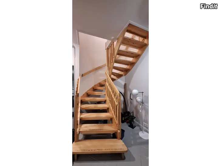 Myydään koivupuiset sisäportaat, huoneen korkeus on 2,7m, tasopintojen korkeus lähtö - ylätaso n. 3 m.