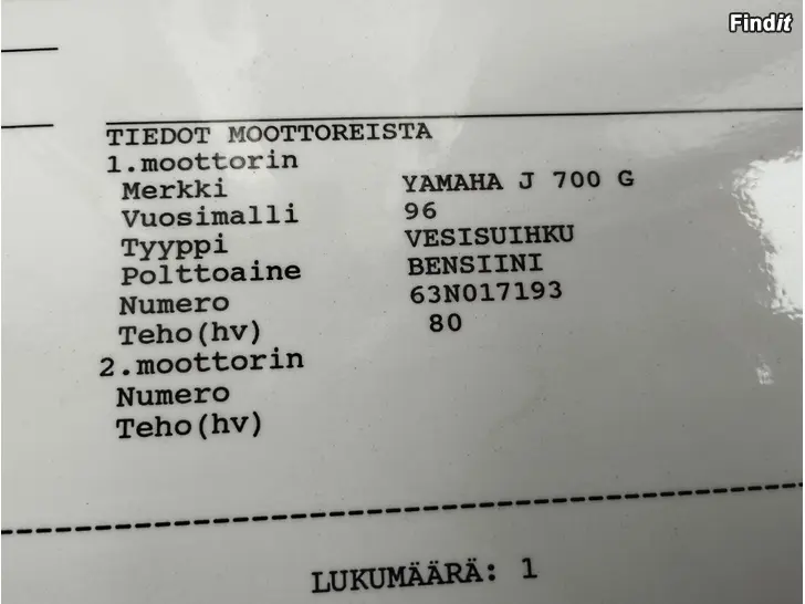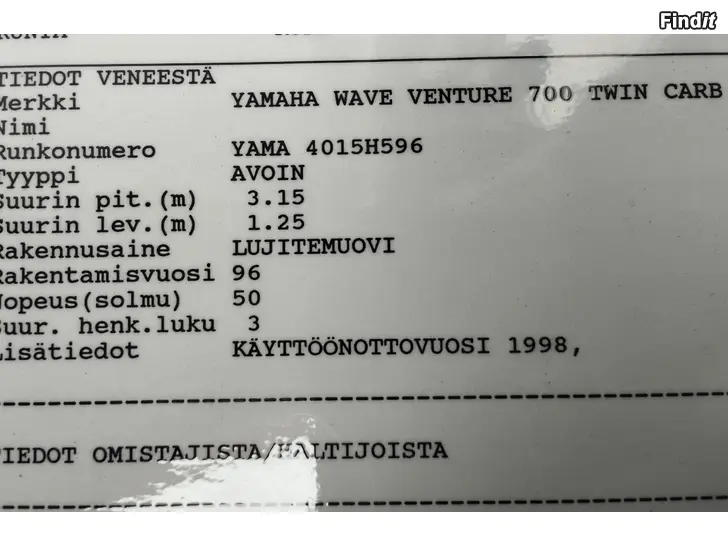 - Vesiskootteri Yamaha 700, vähän ajettu