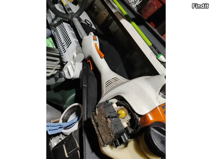 Stihl FS45 trimmeri. Ilmanputsarin kotelo kadonnut johki, toimii ja voi silti käyttää. Fruugo nettikaupassa maksaa uusi kotelo 10,90e. Kone on just huollettu, putsattu jne.