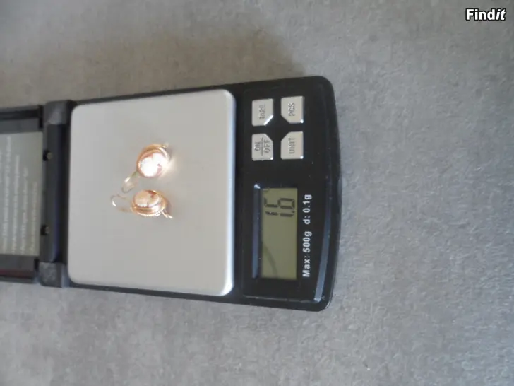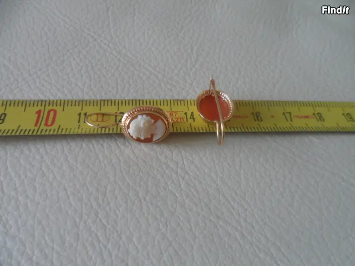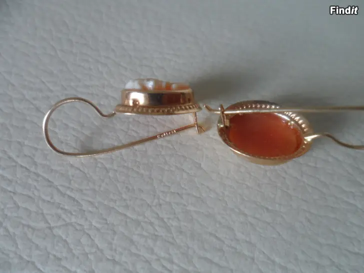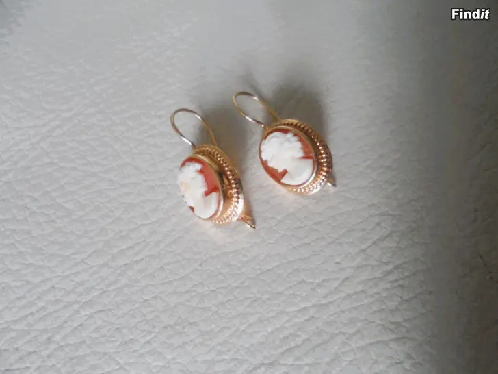 Kuvienmukaiset kultaiset korvakorut noin 1970-luvulta, kok.korkeus n.23 mm