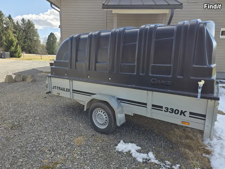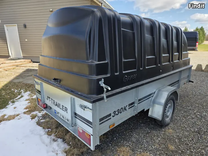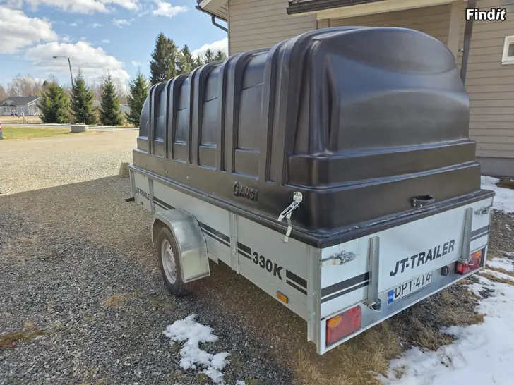 JT-Trailer 330K kuomukärry kipillä myyntiin. Ehjä ja siistikuntoinen.