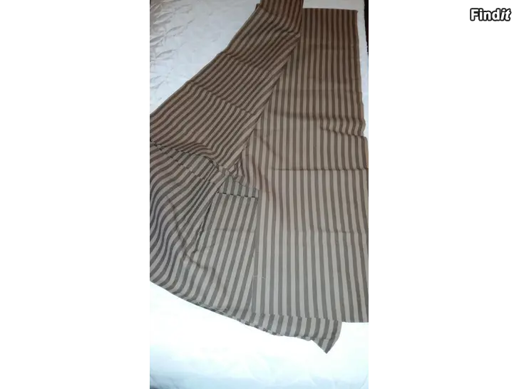 Myydään paksuhkoa, jämäkkää, uutta ruskeaa puuvilla-raitakangasta.