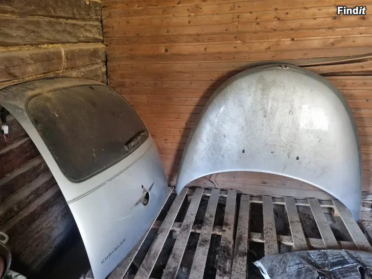 Chrysler PT Cruiser 2001 peltiosia. Etuovet, oik. takaovi, konepelti ja takaluukku. Takaoven kulmassa ja takaluukun keskellä hieman ruostetta, muuten hyviä. Ovissa kaikki niihin kuuluvat osat ja sähkölaitteet kiinni. Toisen takaoven lasi ja ovipahvi mukana. Kaikki yhteensä 50,- Vain nouto.