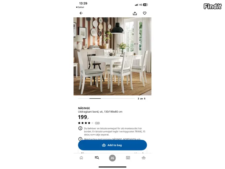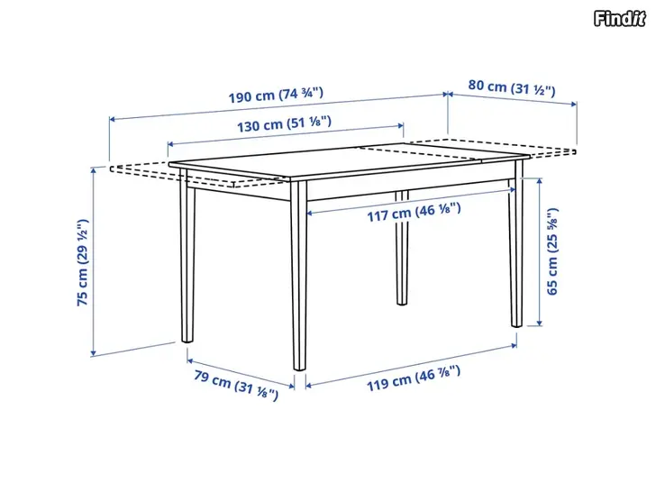Säljes utdragbart matbord från ikea, måtten syns på tredje bilden. Små spår av användning finns se sista bilden men annars i mycket gott skick. Hämtas från Vörå.
