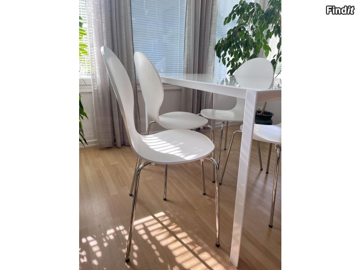 Bord + 4 stolar säljes. 110 x 70 cm.