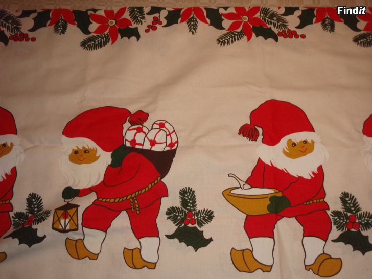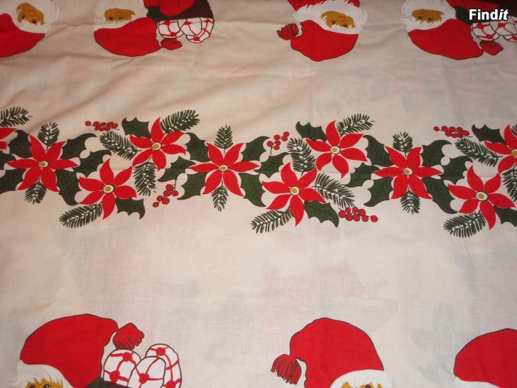Säljes ett nytt jultyg. Storlek c. 300 cm x 150 cm. Passar t.ex till bordsduk. Stadigt bomullstyg.