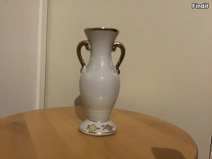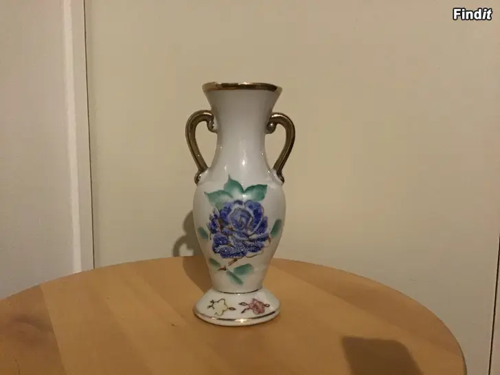 En hel och fin gammal vas med Blom motiv, blå ros med glitter Höjd 16 cm. 2 St söta hund/ katt figuriner, hela och fina. Skåpstädning. Pris 8 euro för alla tre. Sänds ej. Kontantbetalning Se även mina övriga annonser, rabatt vid köp av flera