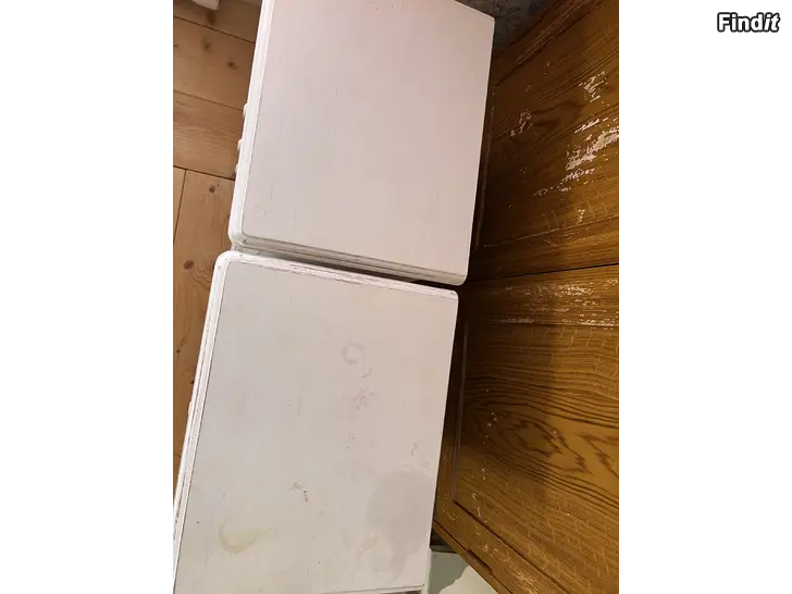 Mått djup 35,5cm bredd 45cm höjd 69cm. Spår av användning och en liten del blivit bort kapad på baksidan se bild. Hämtas från Pedersöre. Pris 100€ säljes tillsammans.