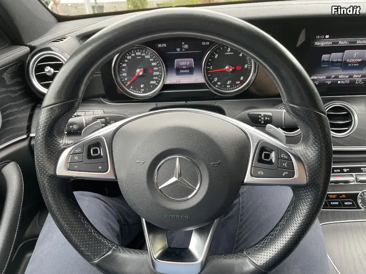 Säljes som obehövlig: Mercedes-Benz E 220 d AMG Line 2018. 194 hk. 246 500 km. Toppfart 235 km/h. Förbrukning 4,9 / 4,6 / 4,4 l / 100 km. 120 g CO2 / km. Bra sommar- och vinterdäck. Sommardäcken på Mercedes AMG-fälgar 275 bak, 245 fram. Även vinterdäcken på lättmetallfälgar. Rikligt utrustad: Burmester Surround -ljudanläggning med 2 x USB och Bluetooth, bägge framstolarna elektriska med 3 minnesplatser, ratten elektriskt ställbar i höjd- och djupled, luftkonditionering med 3 zoner, air freshener med valbar doft, ambient lighting, adaptiv farthållare, aktiv filvakt som vid behov styr bilen, parkeringsassistent, luftfjädring bak med högre läge för dåliga vägar, driver alert -system som vid behov kör till sidan och stannar bilen, Dynamic -funktion med fyra körlägen: Eco, Comfort, Sport, Sport+, 12V uttag fram, bak och i bakluckan, hundnät, navigering med Europas kartor, Mercedes Me -kompatibel, löstagbar dragkrok, Webasto med fjärrkontroll. Digital servicebok och förarhandbok.