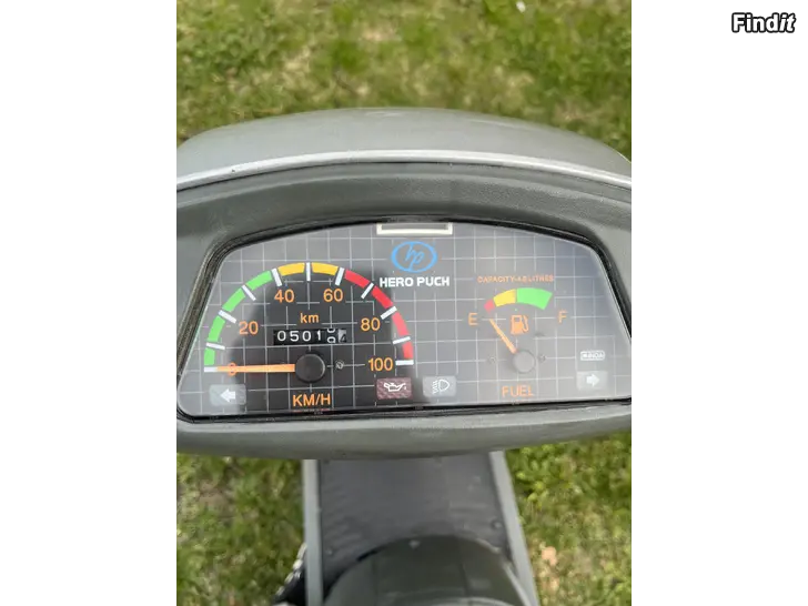 Säljer en Hero Puch Winner 50cc från 2002. Startar och går, men går lite ojämnt och låter högt eftersom avgasröret läcker. Skicket är som väntat för åldern – har skråmor och plast som gått av här och där. Oljeblandaren är urkopplad, så man blandar själv.