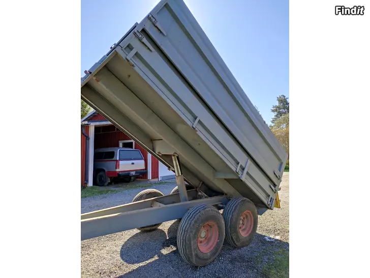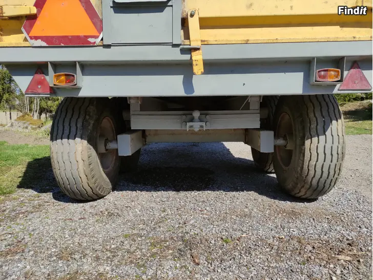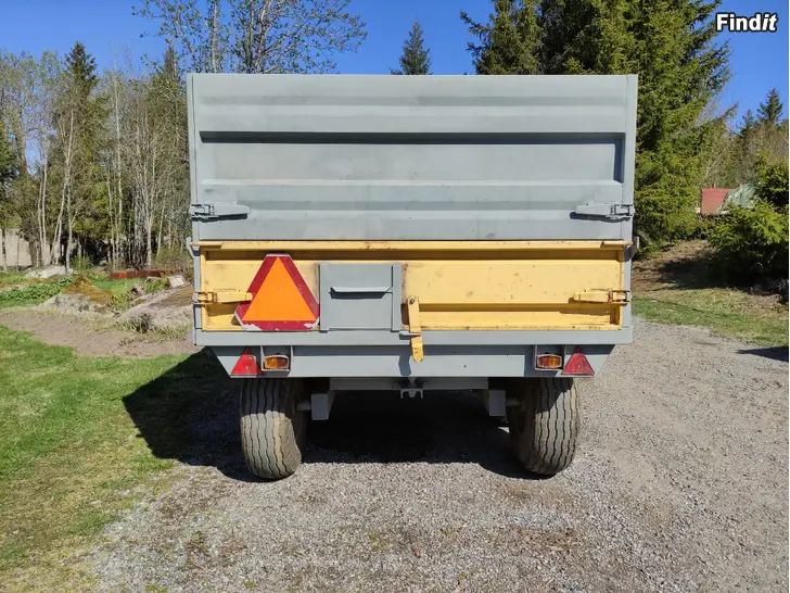 Mycket lite använd Tuhti kippkärra. Bärförmåga 6,5 ton. Däck 11,5-15/8. Använd endast för spannmålstransport. Inga bucklor. Stått inomhus. Fint skick. En ägare. RESERVERAD
