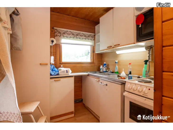 Det kombinerade kök och vardagsrum har fönster och erbjuder tillräckligt med skåp- och arbetsytor. Matplatsen passar naturligt in i vardagsrumsdelen. I bostadshuset finns dessutom två sovrum, enskillt wc, och komforten ökar tack vare luftvärmepumpen och en stor öppen spis.El, kommunalt vatten och avlopp sluten tank.