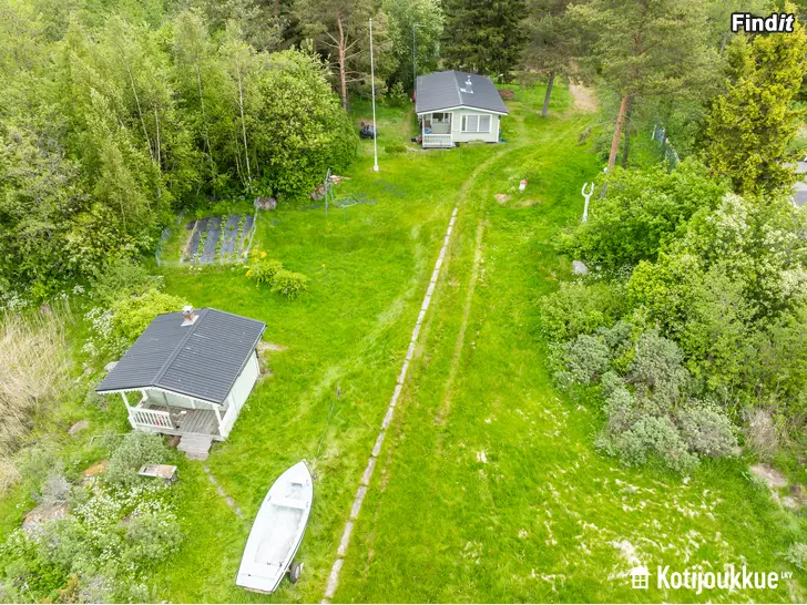 I Molpe finns nu ett charmigt fritidsställe till salu med en enkel stuga på cirka 60 m². Själva tomten är hela 4 400 m² stor, och dessutom finns möjlighet att lösa in vattenområden framför tomten ca 900 m².