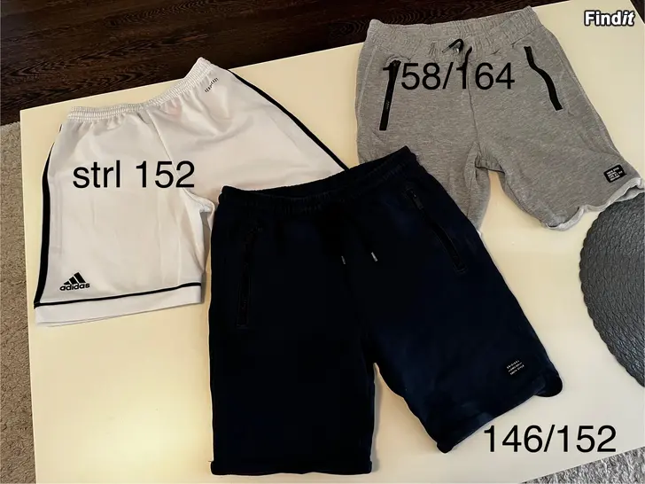 Shortspaket. KappAhl mörkblå med dragkedja vid fickorna/KappAhl grå med dragkedjor/ vita Adidas shorts / strl 152-164