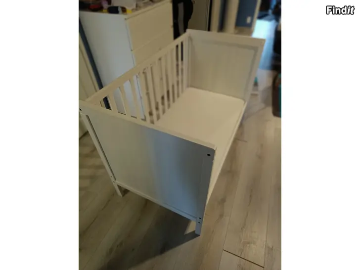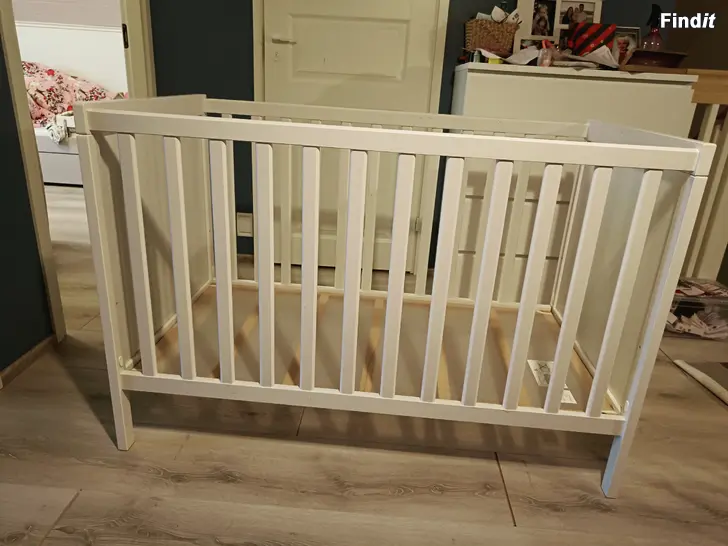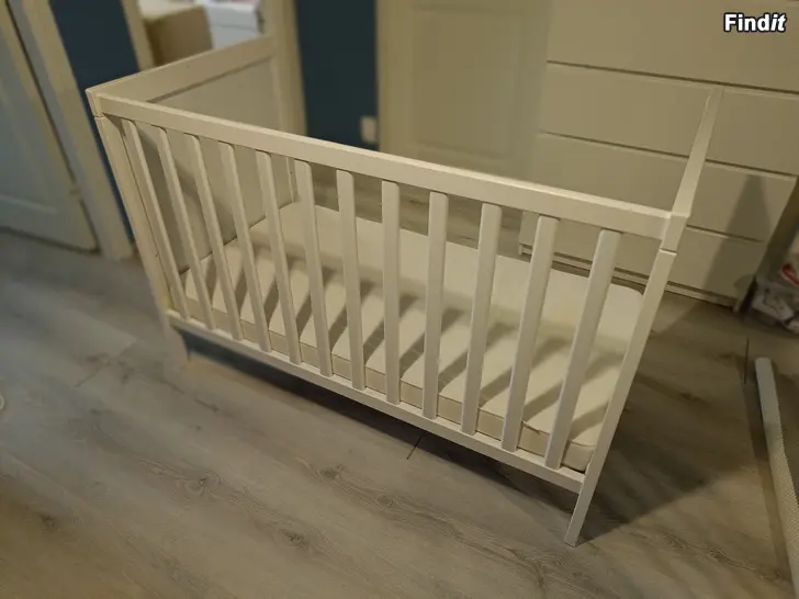 Säng där botten går att ha i 2 olika höjder, ena sidan kan även tas bort.