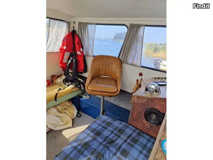 Kulkuri 30, 1984 årsmodell, ford 4cylindri 80hk motor samma årsmodell, styrning både fram och bak! Upphöjt däck och själv länsande köp bort och lägg på nätdragare så har ni bra fiskebåt! Traktor dragen båttrailer medföljer och plotter, Billig vid snabb affär! Ring! Båten i sjön !