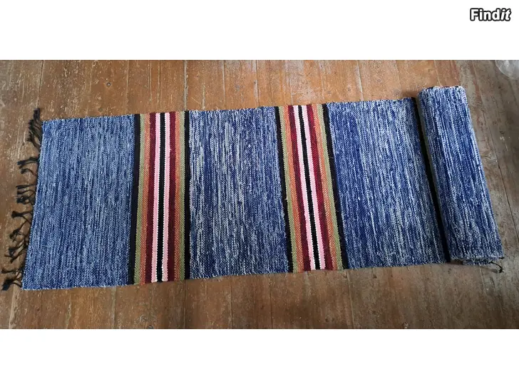 Säljes två likadant vävda trasmattor och måtten är: längd 4,14 m och bredd 70 cm. Styckepriset är 120 euro.