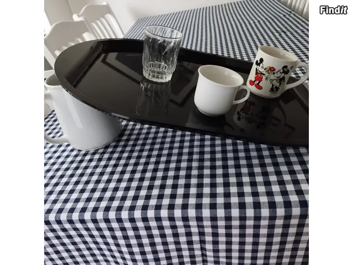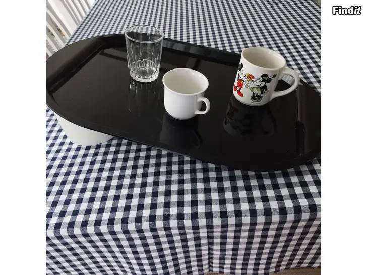 Stor svart specialbricka, ca 55 cm, med glidskyddsyta så att kärl inte glider fast brickan lutas, se bilderna. I skick som ny, ytterst lite använd. Pris 15 €. Tel 040 3647425