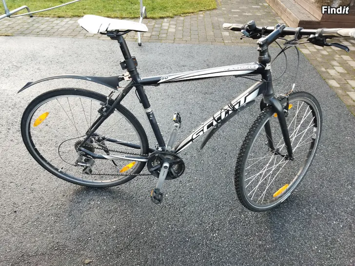 Fungerande cykel som har brister. Ingen bakbroms och bakväxeln fungerar inte så därför säljs cykeln billigt 50 € - vinterdäck ingår. Rekommenderad längs på användaren över 180 cm.