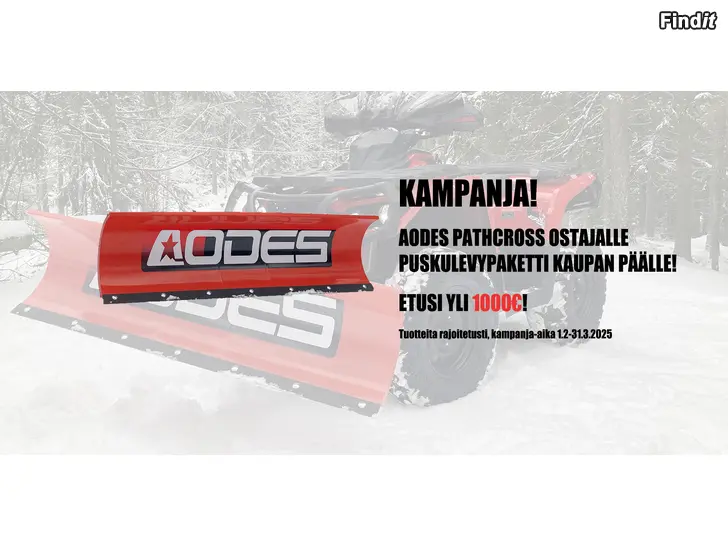 Vid köp av en ny Aodes Pathcross fyrhjuling erbjuder vi snöplog med frontfäste på köpet, förmånens värde 1079 €