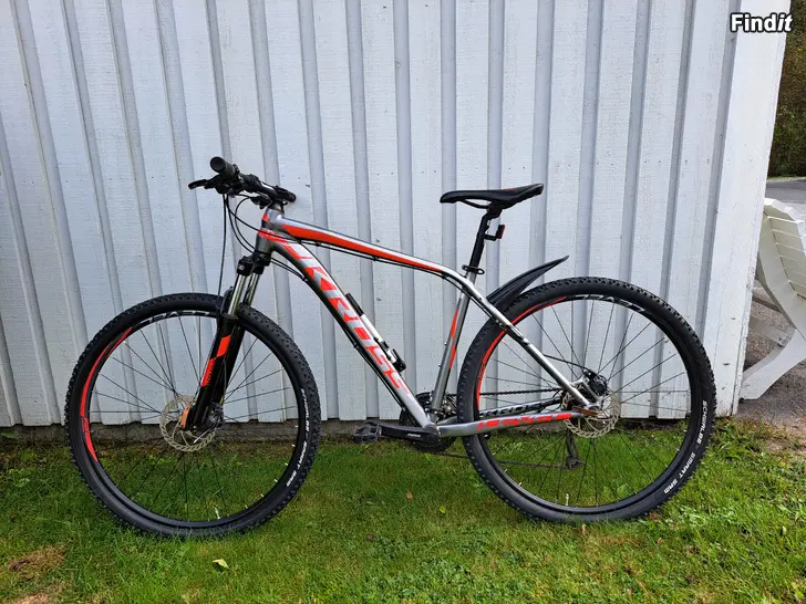 Märke: Kross. 24 växlar. Skivbromsar fram och bak. Stötdämpare fram. Finns i Nykarleby