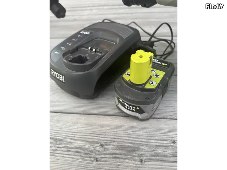 Ryobi Gräs & Häcktrimmer med ett batteri och laddare.