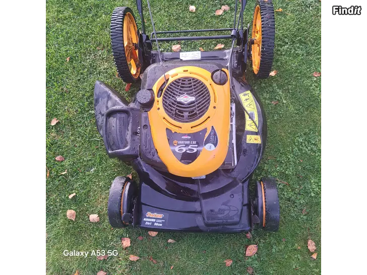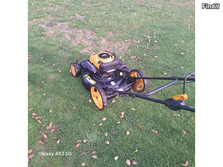 Kraftig 56cm klippare med Bio och sidoutkast. Stark Briggs-Stratton 6,5 hp motor. Framhjuls drift. Startar och fungerar bra.