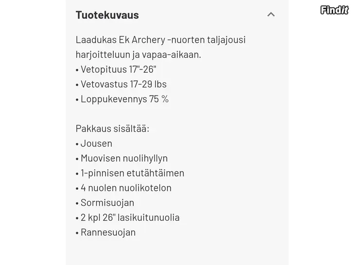 Pilbåge och 4 pilar säljes. I mycket bra skick. Köpt från motonet. Mera info bland bilderna, från motonets hemsida. Finns i Maxmo.