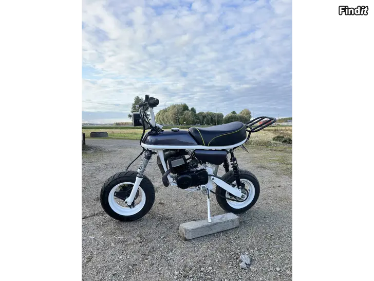 Nyrenoverad motor med nya lager, stefor, packningar. Ny 80 cc cylinderkit med läppä och allt. 20 mm Dellorto, sportfilter, trimrör och tyngre drev.