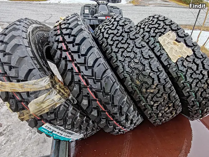 Säljes 2st Bridgestone Dueler M/T 235/85 R16 och 2st BFGoodrich All-Terrain T/A 235/85 R16. Alla fyra har samma dimension och är oanvända. DOT 2008