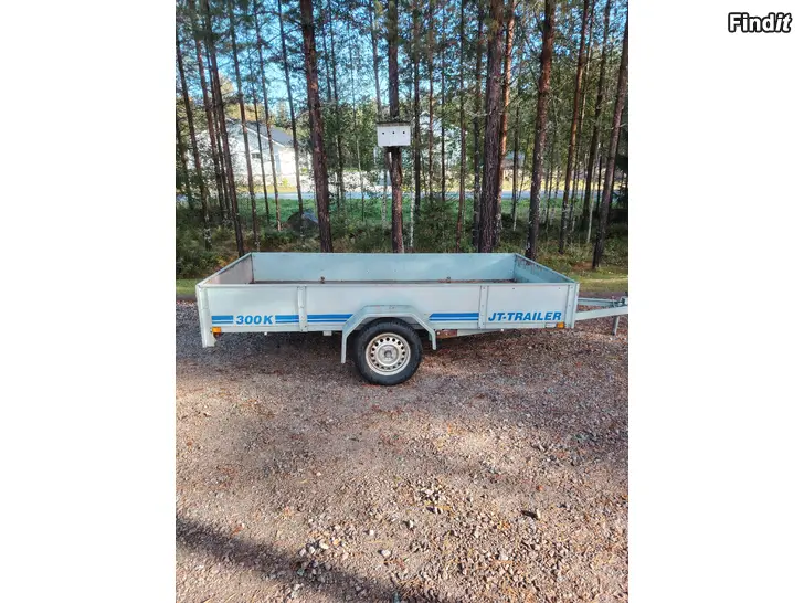Jt trailer 300x150 med 30cm sidor och kipp i bra skick! Nya lampor å ny bottenskiva ifjol!
