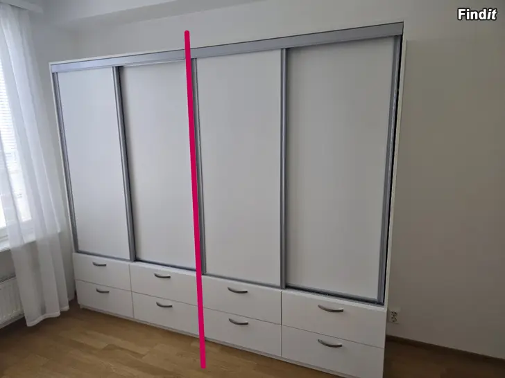 1st felfri stadiga och praktiska förvaringsskåp med skjutdörrar 1930cm hög 1188cm bred. Dörrar och lådor+korgar har rullager. På bilden är det 2skåp och skåpen är emot varandra men bara 1 skåp finns kvar Det är inget Ikea eller Jysk skåp.