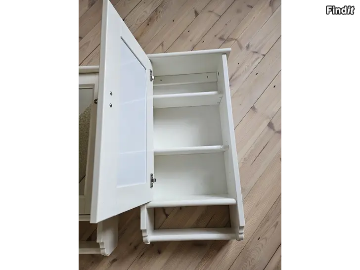 Säljes ett spegelskåp + ett medicinskåp, korsetiketten borde gå att skrapa loss. Finns spår av användning. Obehövliga här efter renovering. 25€ för båda eller skillt för 15/10€.