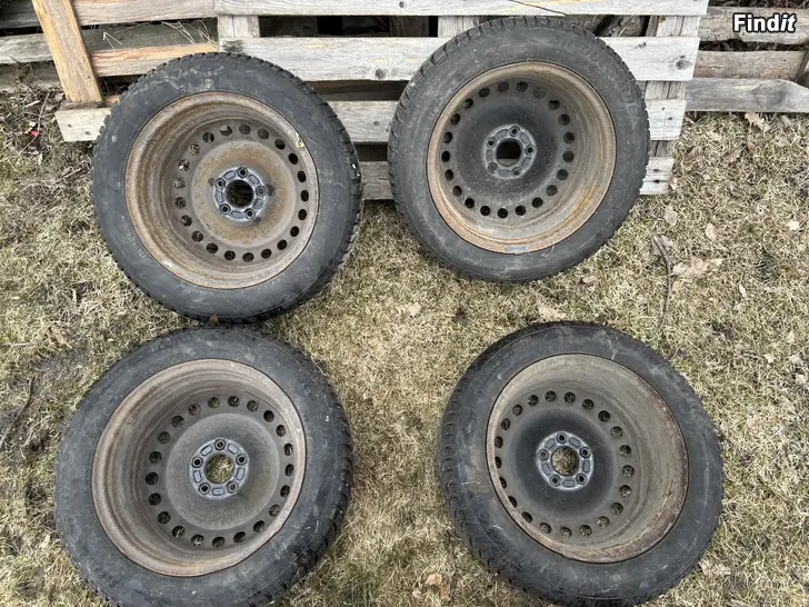 Vinterdäck 205/55R16 bortges som obehövliga. En av av fälgarna har haft en buckla som hamrats bort.