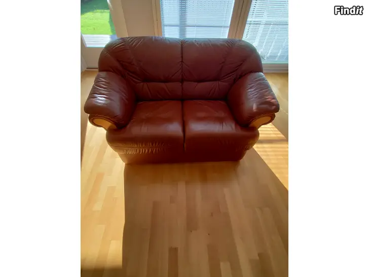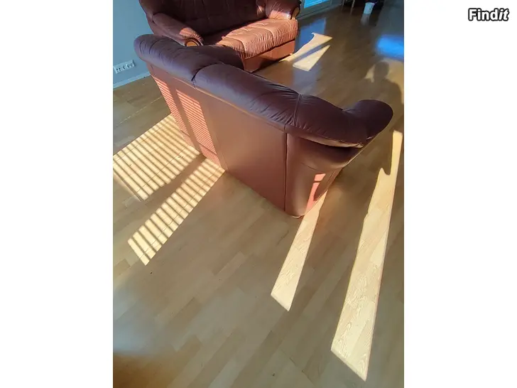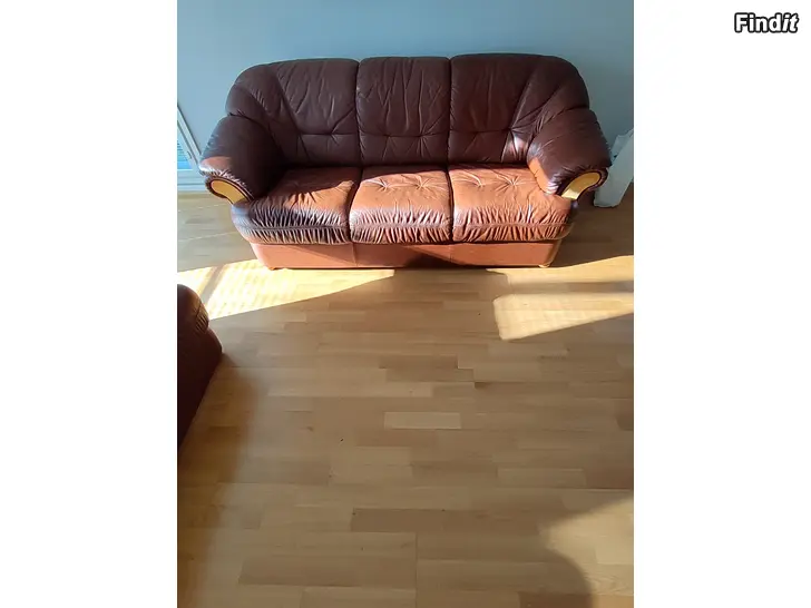2 st bruna läder soffor 150 och 200 cm, finns inga hål av bra kvalitet, den mindre nästan som ny, säljes billigt på grund flytt. FYND PRIS !
