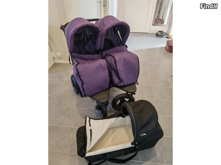 Säljes syskonvagn Carena Gotland i begagnat skick. Vi köpte den ifjol begagnad inför en operation. Tvättade då alla delar till sittvagnarna. Liggdelen är i fint skick. Använde vagnen i en vecka under hösten och sen en dag på vintern. Sedan dess har den stått inomhus ihopvikt. Den rullar väldigt lätt med två barn i och rymmer även större barn. Finns slitage men är välfungerande. Rullar bra både på grusväg och i snö.