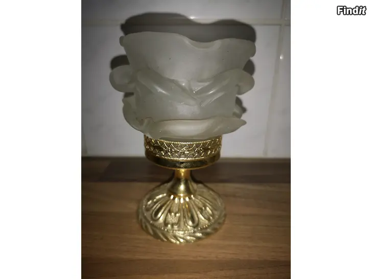 Fot guldfärgad, övre delen mjölkfärgat glas. Lämplig för värmeljus. 13 cm hög.