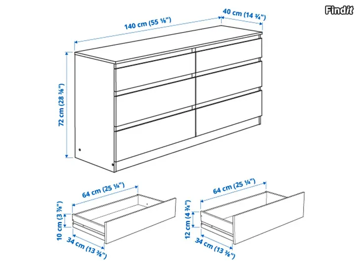 Finns en liten skavank på mittersta lådan på vänster sida. Annars i bra skick.