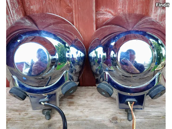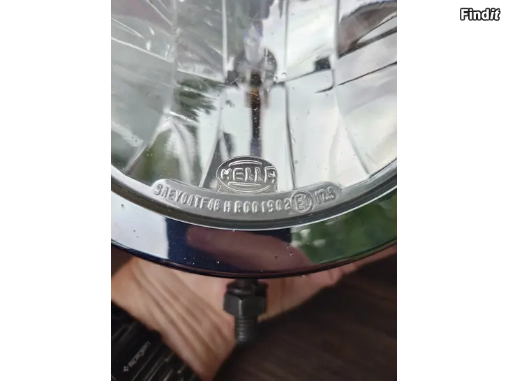 Säljes två st old school Hella extraljus, helkrom, sir bra ut, lite små märken efter sand men nog bra skick, bra reflektorer, måtten syns på bilderna, ref 17,5, obs, tunga ca 1,4 kilo styck så kräver stadig fastsättning, inget relä med, pris 60 euro, kontant elr Mobile pay, finns å hämtas i årvas, text helst först..
