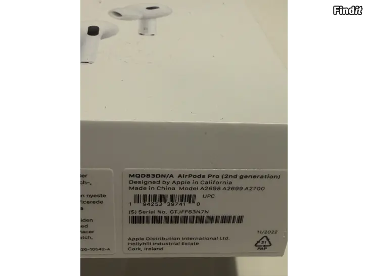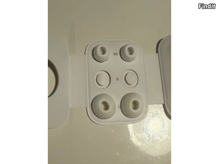 Köpta den 26 januari 2023. Medföljer även originalförpackning, laddningsetui, lightning-laddningskabel och extra silikontoppar XS, S & L.