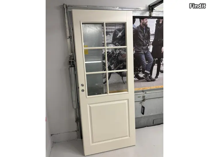 Spegeldörr med glasfönster. Ok skick, mindre skavanker från dammsugare i nedre kant. 9x21. Låsmekanisk ingår, ej handtag. Finns i sundom. Ingen karm, endast dörr Skicka gärna epost eller sms.