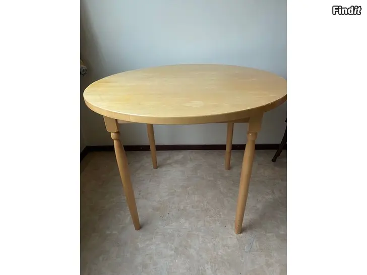 Runt köksbord i trä säljes. 90 cm i diameter. Har lite märken på ytan.