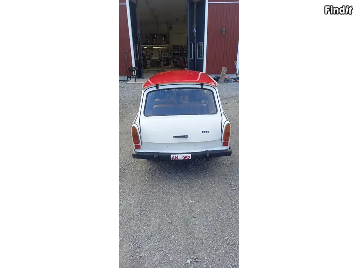 Trabant 601 Combi. Ett bra exemplar, borde gå att museieregistrera utan större problem. Årsmodell 1990, sista året innan tillverkningen upphörde. Den blev skattad och besiktad i september, väntar på regplåtar utan EU märkning, borde komma denna vecka. Är i trafik, så provkörning möjligt.