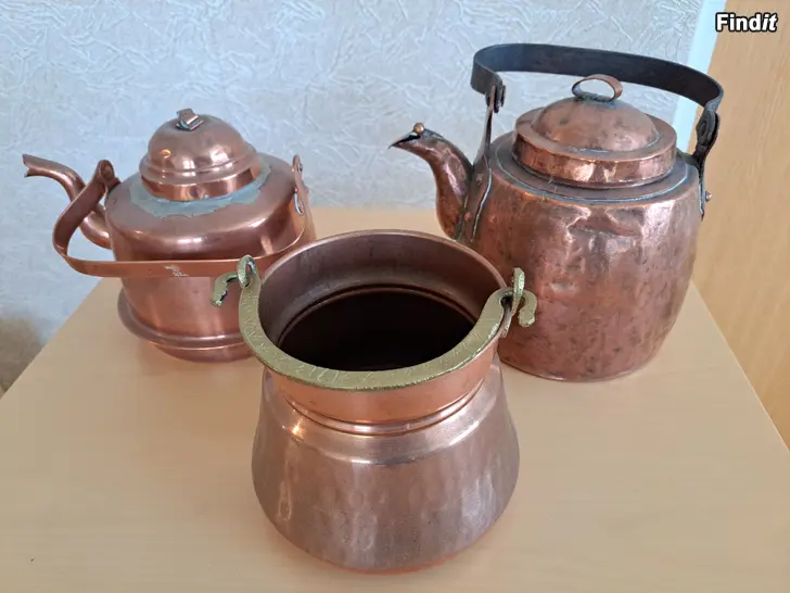 Antika koppar kaffepannor 3 st säljes sammanlagt 80 €.