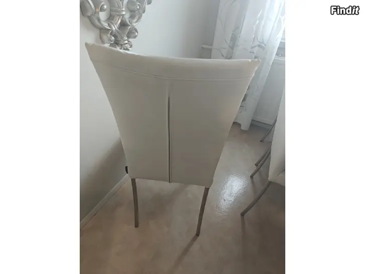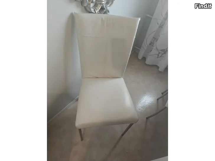 Myydään kuvan ruokailuryhmä kuudella Pohjanmaan nahkatuolilla.