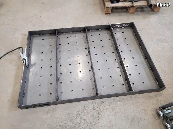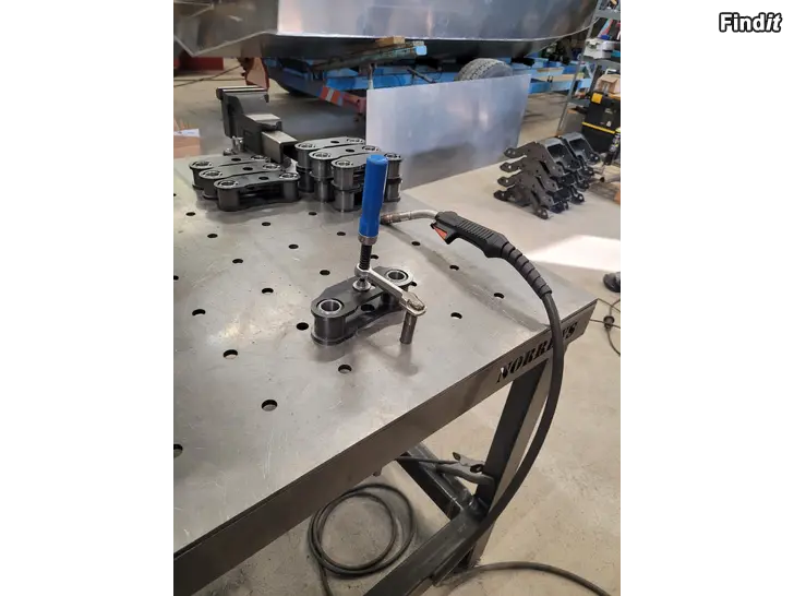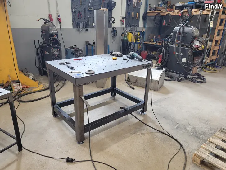 -Svetsbord tillverkat av 8mm plåt med 16,3mm hål och cc 100mm. -M30 ställbara fötter -Mått bordsskiva 900x1300mm -Höjd 900mm säljs som byggsats 700€+moms. svetsat 1100€+moms