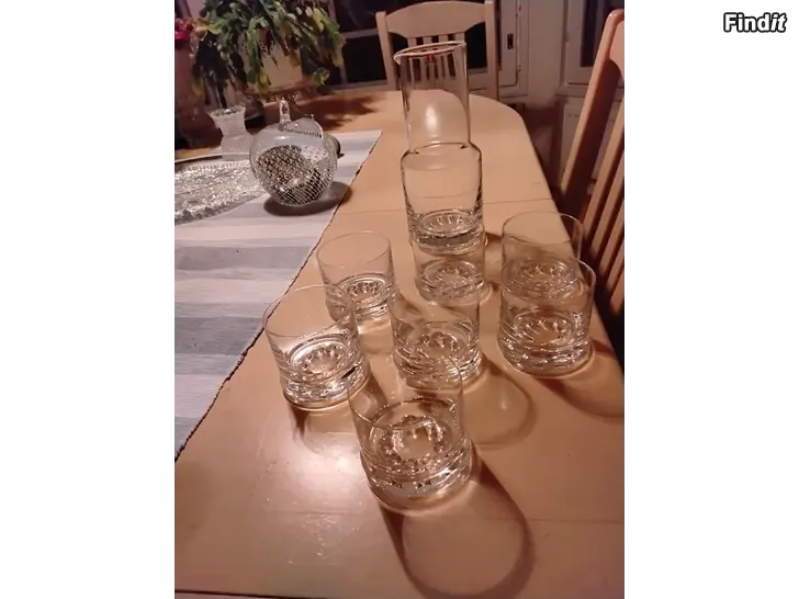 Iittala karaff Helminauha och 7 glas i gott skick säljes.Hela paketet 70 euro